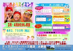 3月・4月のおためし教室は各コースより曜日を指定し週に1回通うコースです。